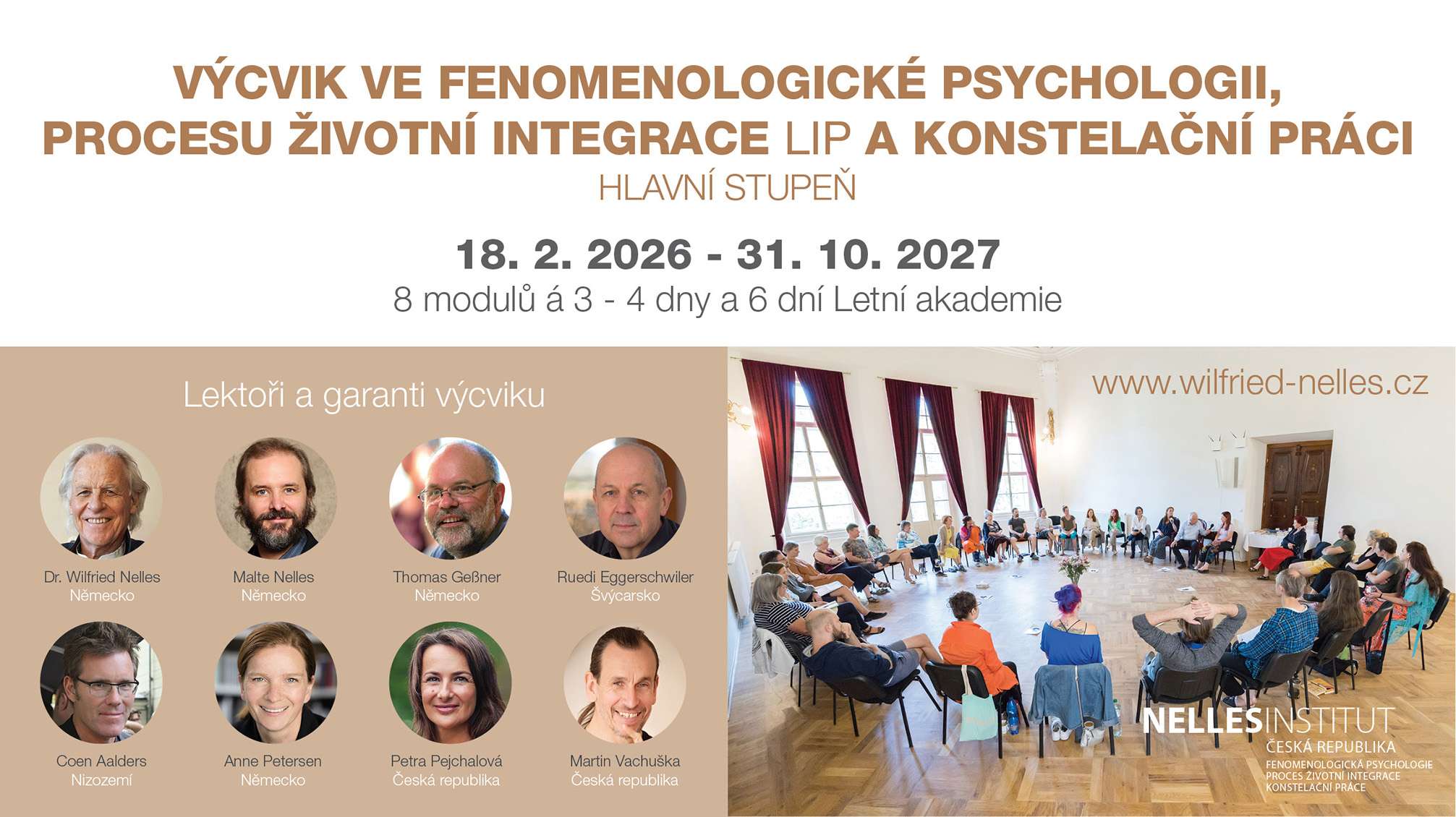 Hlavní stupeň VÝCVIKU VE FENOMENOLOGICKÉ PSYCHOLOGII, PROCESU ŽIVOTNÍ INTEGRACE L.I.P. A KONSTELAČNÍ PRÁCI 2026-27